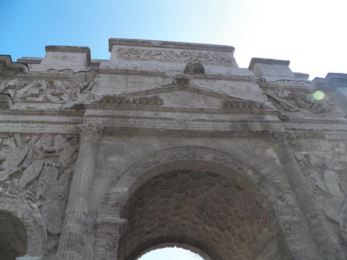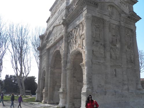 (o Arco do triunfo e o teatro romano na cidade de Orange, o Aqueduto Pont du Gard e a Arena na cidade de Nîmes)