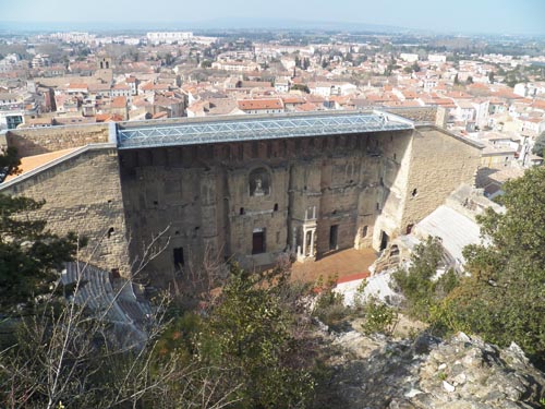 Situado no vale do Ródano, o antigo teatro de Orange, com a sua fachada de 103m de comprimento, é um dos teatros romanos mais conservados no mundo. O teatro foi encerrado em 391 por ordem do imperador, depois do Cristianismo se ter tornado a religião oficial do império e terem sido abolidos os espetáculos pagãos. O teatro foi assim abandonado, saqueado e pilhado pelos bárbaros. Só no século XIX ele voltou a recuperar algum do seu antigo esplendor graças a obras de restauração iniciadas em 1825.