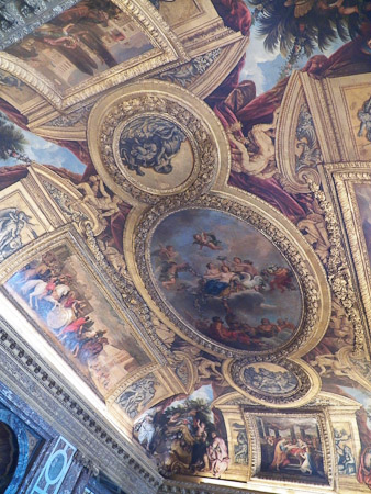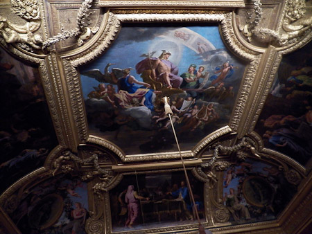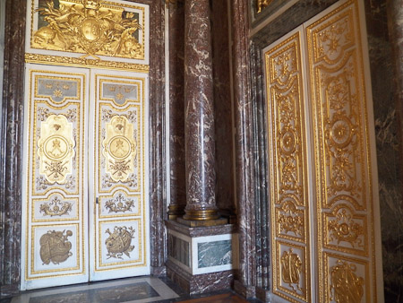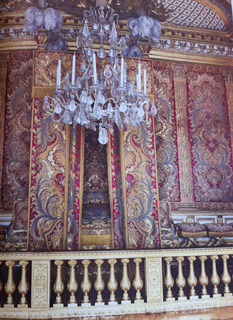 (aqui sim em 1701, Luís XIV decidiu fazer desta sala o seu quarto de dormir, é aqui que o Rei Sol morreu em 01 de Setembro de 1715. Depois dele, Luís XV como Luís XVI continuarão a repousarem-se. Dali poderia ter uma ótima visão dos seus esplêndidos jardins pelas janelas)