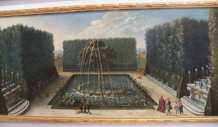 Le Brun, primeiro pintor do Rei, fornece os desenhos para toda a decoração interior dos Grandes Apartamentos e para as esculturas das fontes que multiplicam seus efeitos de água nos jardins, nas alamedas, nos bosques.