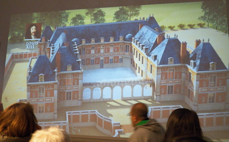 Quando, no começo do seu reino pessoal em 1661, Luís XIV vem distrair-se no abrigo de caça do pai e ordenar os primeiros arranjos, ele próprio não imagina que essa pequena construção, que corresponde aos edifícios que rodeiam o futuro pátio de Mármore, vai tonar-se o centro de um imenso conjunto.