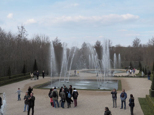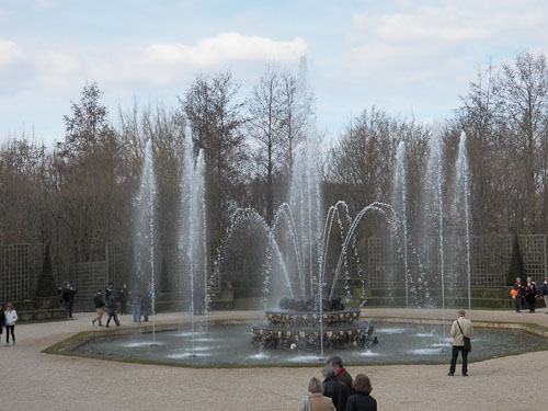 Por sua imensidão, claro q não consegui visitar tudo. Pois ele possui a parte Oeste (leste-oeste, Norte-Sul), os jardins de água, o lago de Apolo, jardim do norte, os lagos do dragão e de Netuno, lado Midi com o jardim do Midi, o Laranjal e o lago dos Suíços, as Alamedas e os bosques, o lago das estações, sala de Baile e o bosque da Colunata, os bosques do Encélado e dos Dômes e o bosque dos Banhos de Apolo.