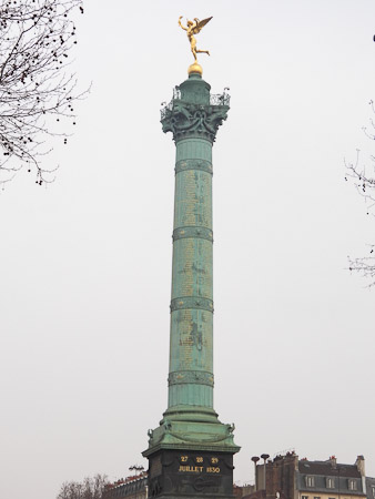 Então, no fim das contas, foi Inspirado pela coluna de Trajano, que a Bastilha foi inaugurada em 28 de Julho de 1840. Sua coluna em bronze estão gravados os nomes dos 504 vítimas de julho de 1830, é encimado por uma estátua de ouro do Gênio da liberdade, o trabalho de Augustin Dumont..jpg)