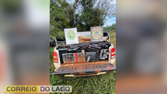 Após trabalho de acompanhamento, uma camionete Mitsubishi L200 foi localizada abandonada na região de mata nas proximidades do município. O veículo transportava 879,4 kg de maconha.