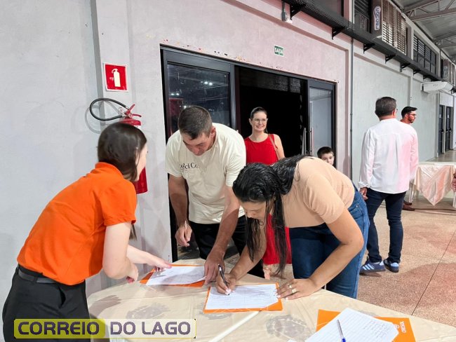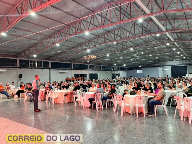 O Centro de Eventos Silom Schimidt, localizado no Balneário Terra das Águas, foi o palco da assembleia da Cresol Integração na noite desta quarta-feira (18). O evento reuniu um grande número de associados, que compareceram para acompanhar detalhadamente a prestação de contas e os resultados financeiros relativos ao exercício de 2025.