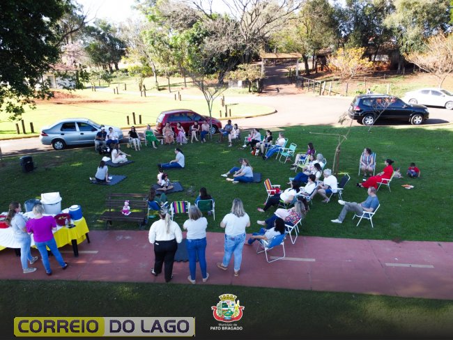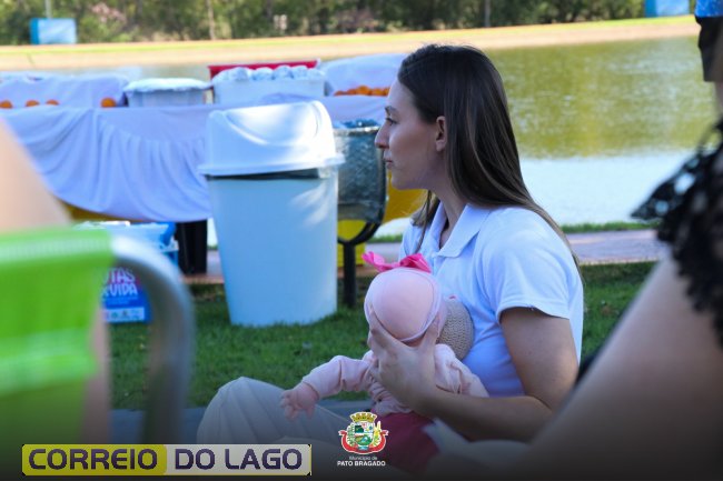 Neste sábado (16), Pato Bragado promoveu o Primeiro Mamaço, um evento que reuniu diversas mães e gestantes no lago municipal, em celebração ao Agosto Dourado, mês dedicado à conscientização sobre a amamentação.