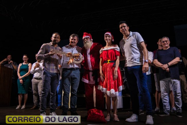 A presença mais aguardada foi a chegada do Papai Noel, que atraiu olhares brilhantes e muitos sorrisos das crianças. A entrada do bom velhinho marcou também o acendimento oficial das luzes natalinas e os fogos, transformando a cidade em um cenário iluminado, acolhedor e repleto de espírito natalino.