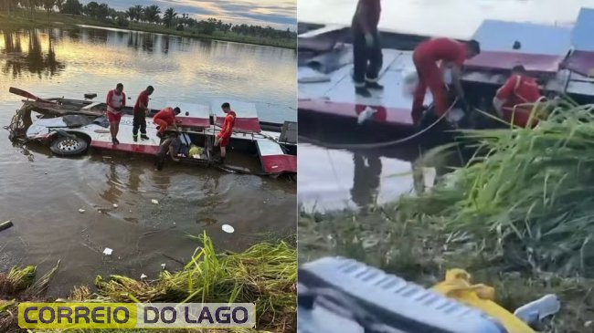 Com a manobra, os carros envolvidos também saíram da pista. O ônibus ficou parcialmente submerso.