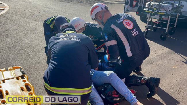 Equipes do SAMU e da Defesa Civil foram acionadas para prestar atendimento. A condutora da motocicleta foi socorrida e encaminhada ao Hospital Beneficente Moacir Micheletto para avaliação médica. Não há informações atualizadas sobre o estado de saúde da vítima.