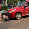 Um carro modelo Peugeot, que seguia pela rua Argentina, colidiu com uma moto Biz que trafegava pela Avenida São Paulo.