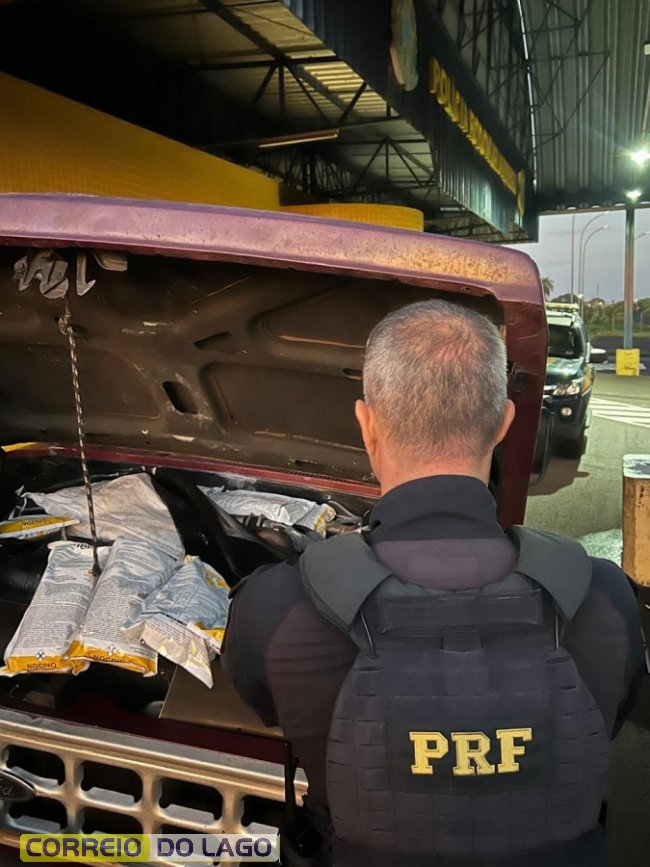 Agrotóxicos contrabandeados foram encontrados escondidos no compartimento do motor de uma caminhonete Ford F100, na madrugada desta quinta-feira (26), no quilômetro 314 da BR-163, em Guaíra.