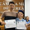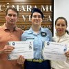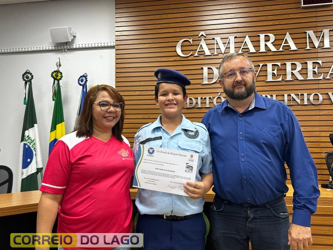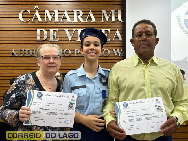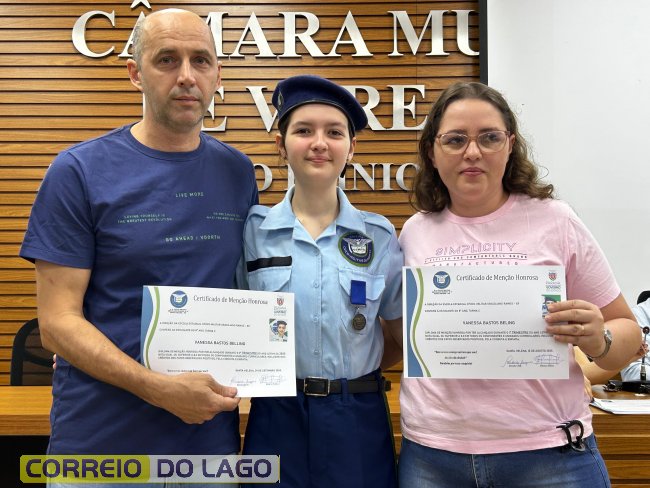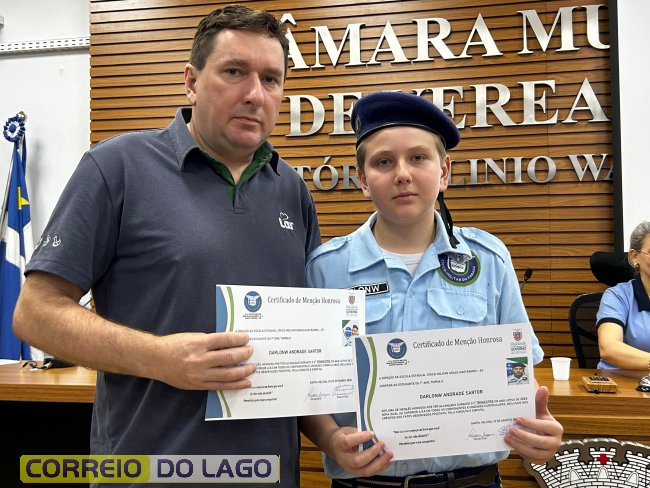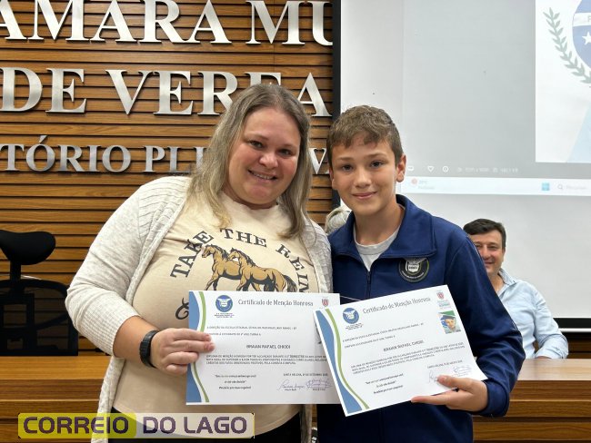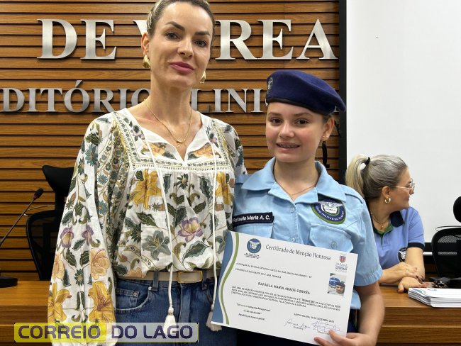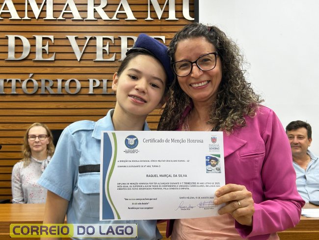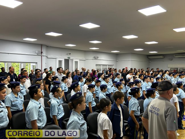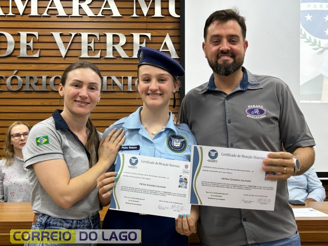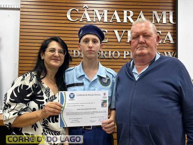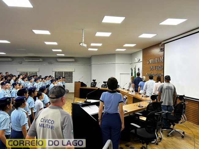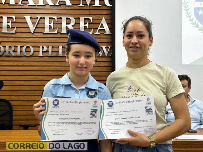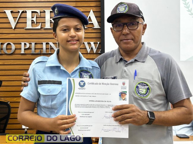 Na manhã desta quarta-feira (01), a Câmara de Vereadores de Santa Helena foi palco de uma solenidade especial da Escola Estadual Cívico-Militar Graciliano Ramos. Durante o evento, alunos que se destacaram nos dois primeiros trimestres receberam certificados de regularidade em suas notas, além de menções honrosas por atitudes exemplares.