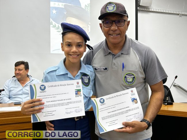 Alunos da Escola Cívico-Militar Graciliano Ramos de Santa Helena recebem certificados por bom desempenho