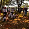 Alunos de Santa Helena participam de ação de conscientização durante limpeza do lago realizada pela colônia de pescadores e prefeitura
