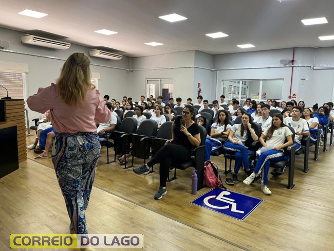 Os alunos formandos do Colégio Estadual Humberto de Alencar Castelo Branco, de Santa Helena, participaram na tarde desta sexta-feira (7) de uma palestra especial voltada à preparação para o Exame Nacional do Ensino Médio (Enem). O encontro, realizado na Câmara Municipal de Santa Helena, foi conduzido pela professora Sol do Prado, da Uniguaçu, dentro do projeto Uniguaçu nas Escolas.