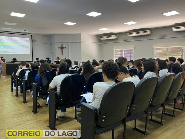 Alunos do Colégio Humberto de Alencar Castelo Branco participam de palestra sobre redação do Enem na Câmara Municipal de Santa Helena