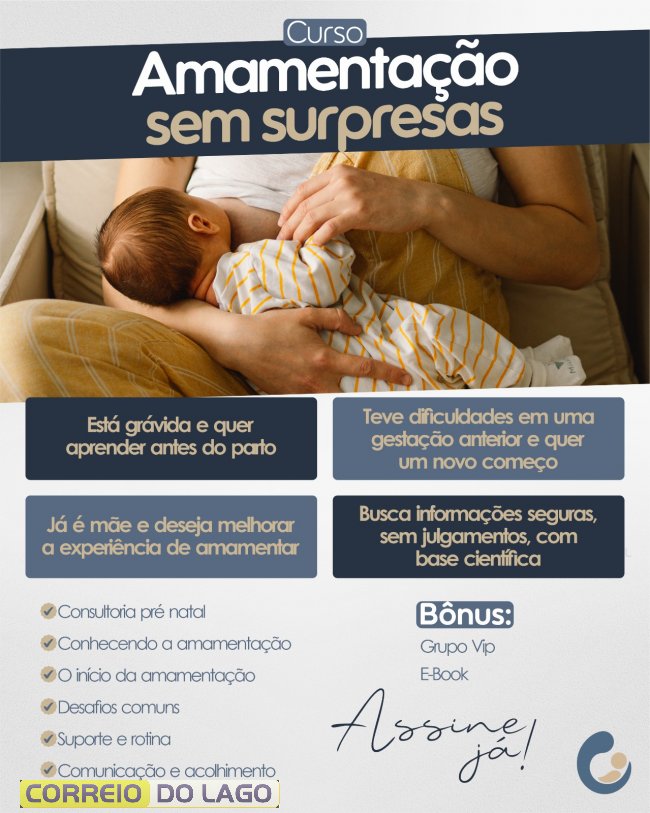 O curso aborda desde o período pré-natal até o início da amamentação, com explicações sobre rotina, desafios comuns e formas de tornar esse processo mais tranquilo. As orientações são baseadas em informações científicas, com linguagem acessível e sem julgamentos.