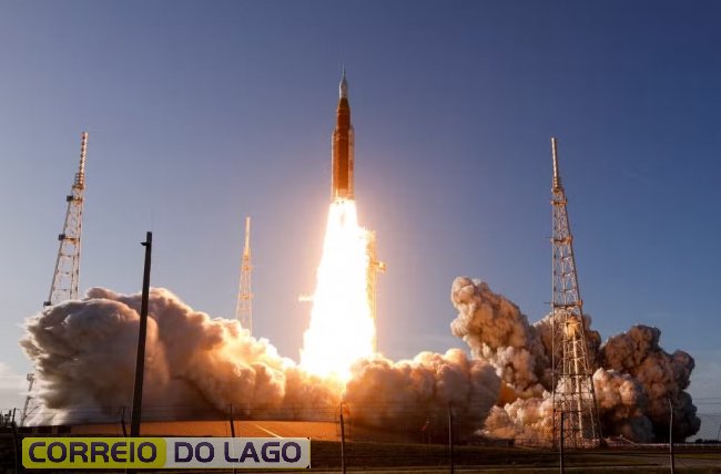 A cápsula Orion saiu do chão às 19h24 (horário de Brasília) no Centro Espacial Kennedy, na Flórida, a bordo do foguete SLS, o mais poderoso já operado pela NASA.