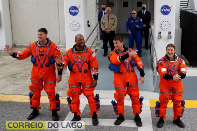 A bordo estão os astronautas Reid Wiseman, Victor Glover e Christina Koch, da NASA, e Jeremy Hansen, da Agência Espacial Canadense. A missão não prevê pouso lunar: o objetivo é testar todos os sistemas da Orion em voo tripulado no espaço profundo antes de uma tentativa de pouso em missão futura.