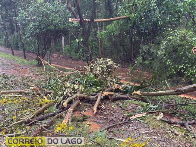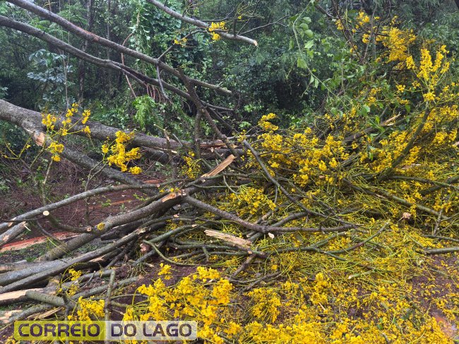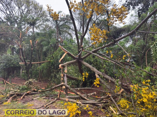 Os galhos atingiram fios de energia, e equipes de segurança foram acionadas para remover os galhos e detritos do local.