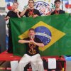 A equipe brasileira, composta por quatro atletas, teve uma performance irretocável, acumulando cinco primeiros lugares, distribuídos entre as modalidades de Sanda (luta) e formas (mãos livres e armas).