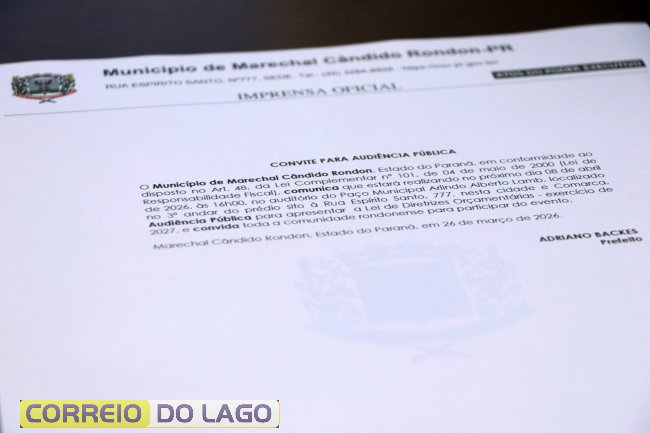 A prefeitura de Marechal Cândido Rondon, por meio da Secretaria de Planejamento e em conformidade com a Lei de Responsabilidade Fiscal, realizará no dia 8 de abril uma audiência pública para apresentação da Lei de Diretrizes Orçamentárias (LDO) do exercício de 2027.