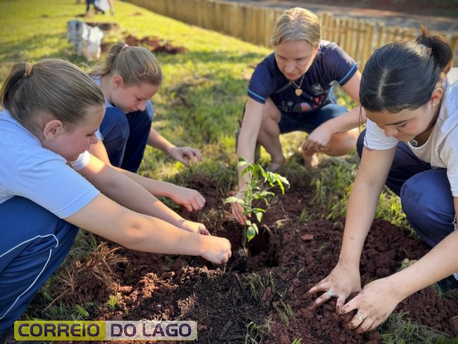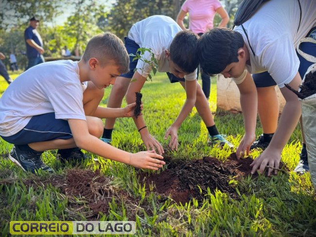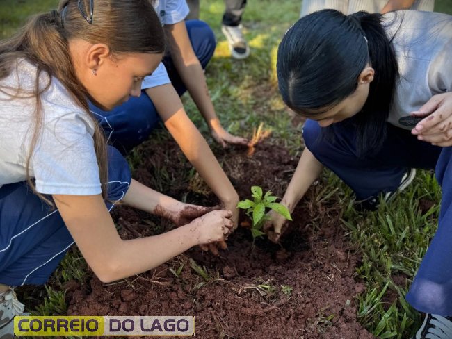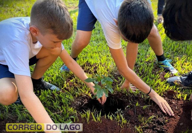 Ação em Santa Helena reuniu alunos do Colégio Graciliano Ramos para o plantio de 15 árvores, reforçando o compromisso com a preservação ambiental e a sustentabilidade.