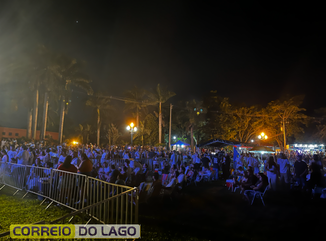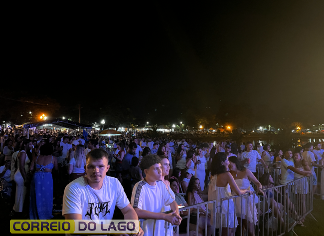 A animação começou com a apresentação do DJ Bass, que aqueceu o público e deu o tom festivo da noite. Em seguida, o show principal ficou por conta da dupla Felipe e Rodrigo, que levantou a multidão com um repertório envolvente e conduziu, junto ao público, a contagem regressiva para a virada do ano, criando um clima de união e expectativa entre os presentes.