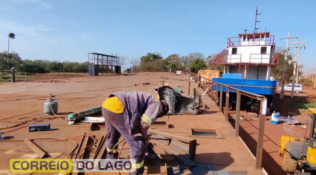 Balsa gigante que irá singrar o Lago de Itaipu está sendo construída no Porto Índio