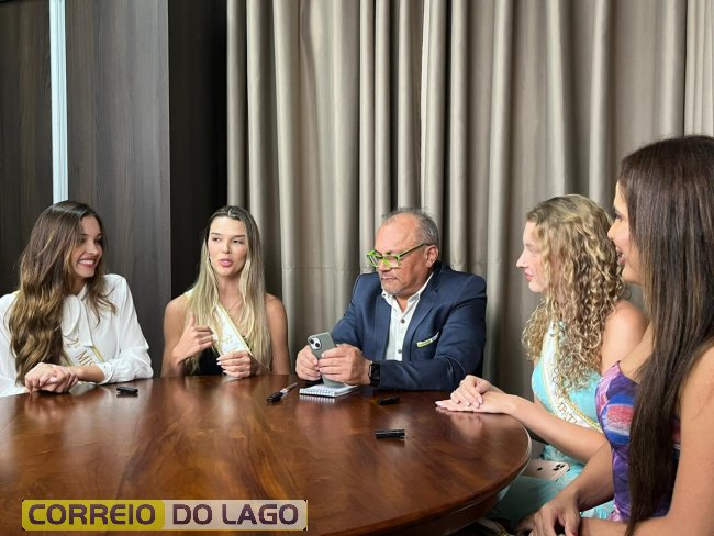O jornalista José Macedo, do Correio do Lago, recebeu as representantes eleitas no concurso Miss Itaipulândia 2025 para uma entrevista que destacou suas trajetórias profissionais, os desafios da preparação e os planos de atuação social na comunidade.