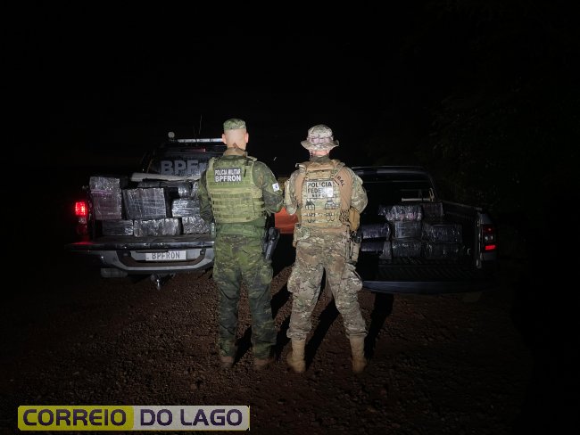 Nesta sexta-feira (14), o Batalhão de Polícia de Fronteira (BPFRON), da Polícia Militar do Paraná, apreendeu quase uma tonelada de maconha durante patrulhamento da Operação Protetor em Itaipulândia. A ação contou com apoio do NEPOM, da Polícia Federal.