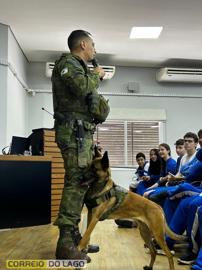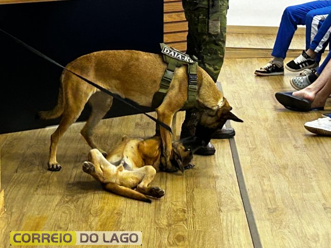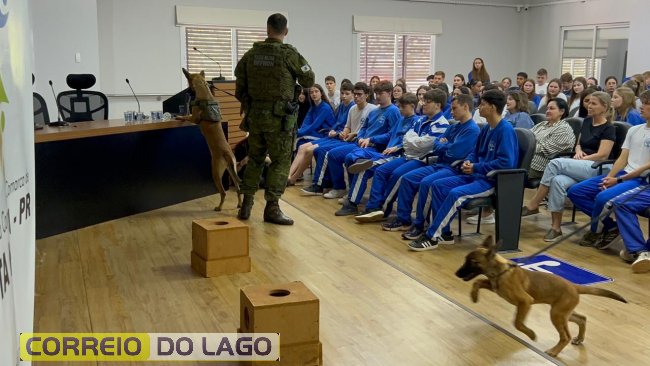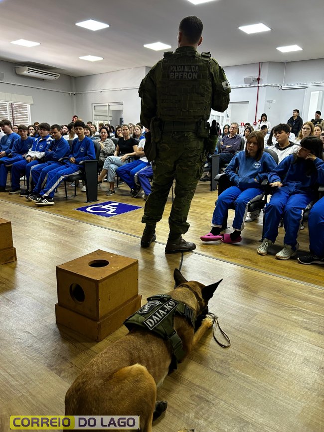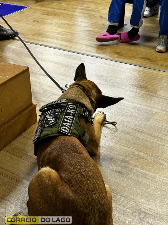 O evento abordou temas relevantes à segurança pública, como a utilização de entorpecentes, cigarros contrabandeados, vapes e POD’s. Os estudantes também puderam acompanhar demonstrações do treinamento do K9 e observar como os cães policiais agem ao farejar ilícitos em cargas suspeitas.