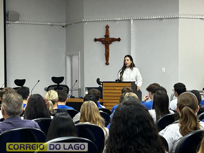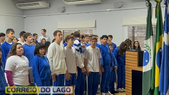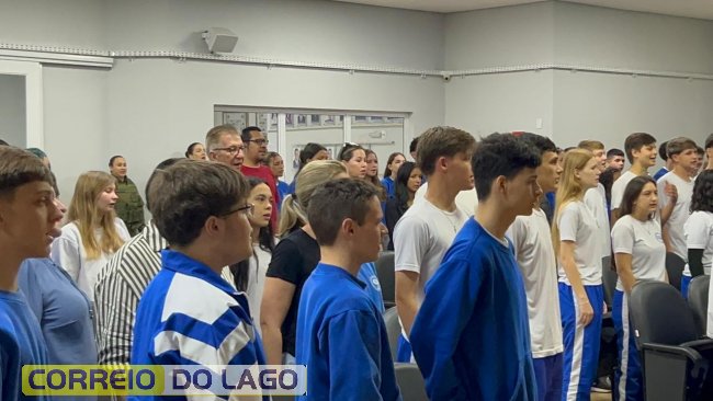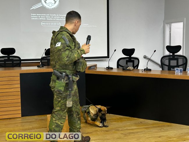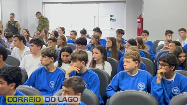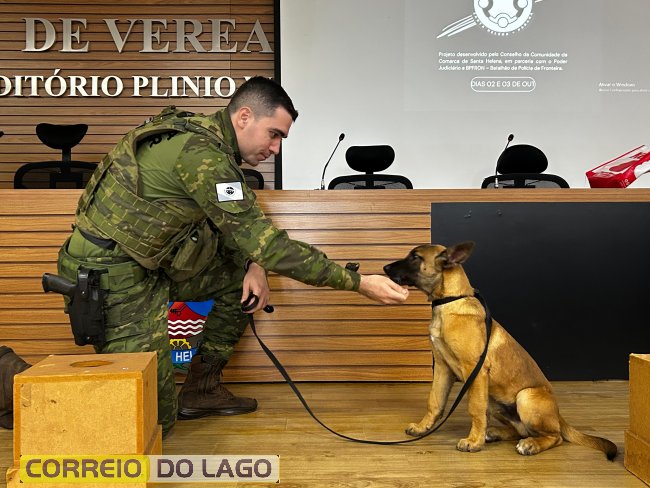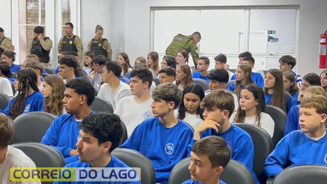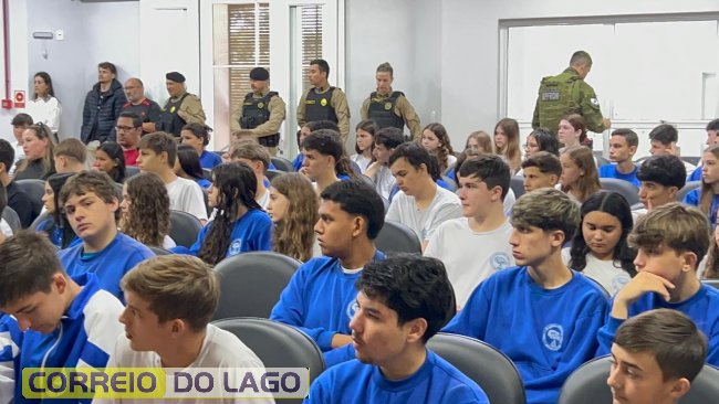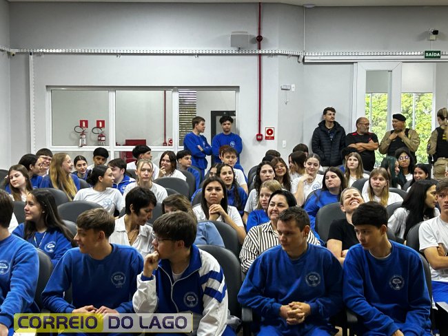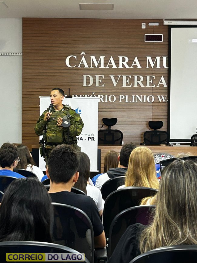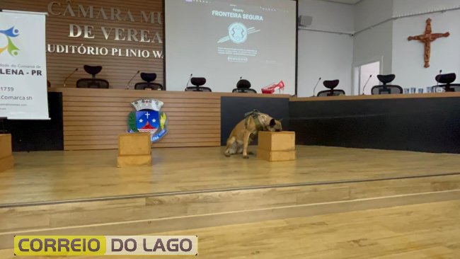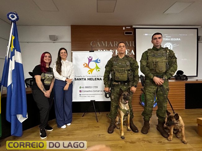Na manhã desta quinta-feira (02), alunos da Escola Estadual Humberto de Alencar Castelo Branco participaram de uma apresentação realizada pelo Batalhão de Polícia de Fronteira (BPFron) em parceria com o Conselho da Comunidade, na Câmara de Vereadores de Santa Helena.