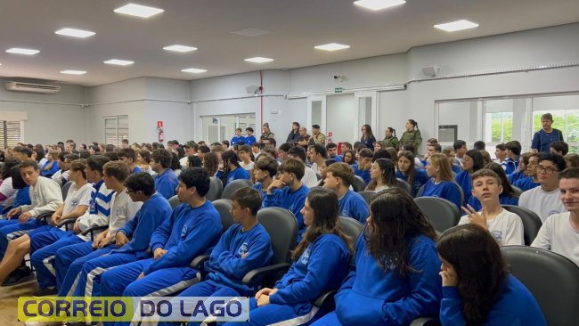 A ação contou com a presença da Polícia Militar de Santa Helena, sob o comando da Tenente Karina Kraulich, reforçando a importância da educação preventiva e do contato dos jovens com as atividades de segurança pública.