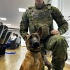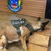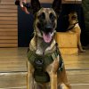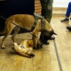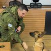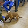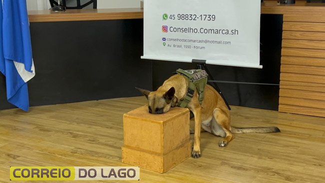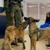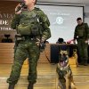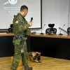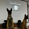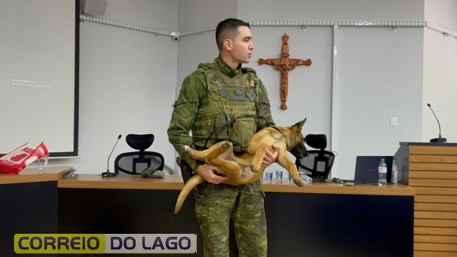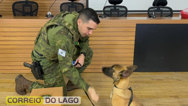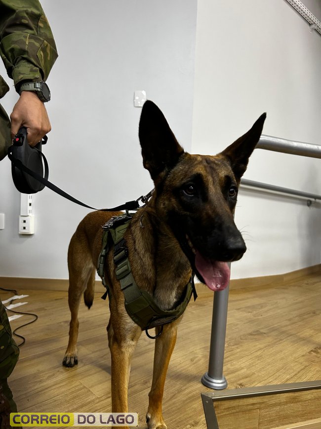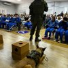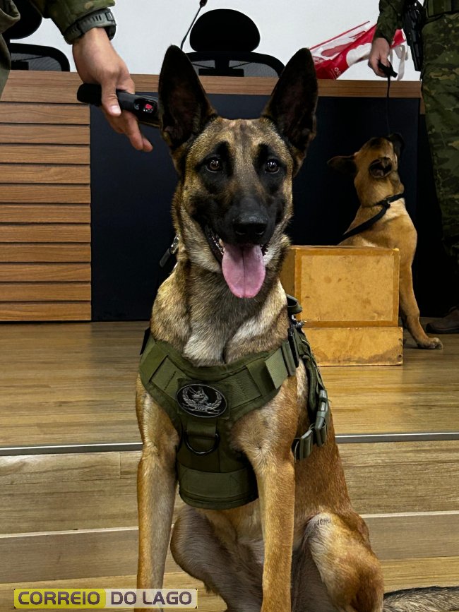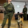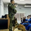 O estagiário Baré e a policial Daia (K9) realizaram demonstrações práticas, mostrando todo o trabalho desenvolvido por um cão policial. Baré, que ainda está em treinamento, será incorporado futuramente ao corpo de cães policiais do BPFron.