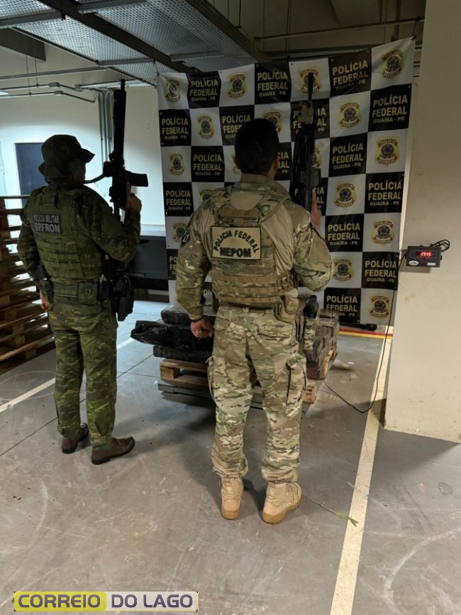 Nesta terça-feira (24), a Polícia Militar do Paraná, por meio do Batalhão de Fronteira (BPFRON), no âmbito da Operação Protetor de Divisas e Fronteiras e Operação SULMASSP, em ação conjunta com a Polícia Federal-NEPOM, realizavam patrulhamento de rotina na região rural de Guaíra, quando verificaram marcas de pneus de carros em uma estrada rural.