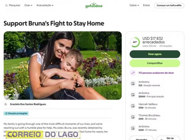 Graziela Dos Santos Rodrigues, irmã da brasileira, criou uma página no GoFundMe em nome dela. Na página, ela ressaltou que os Estados Unidos são o lar de Bruna desde 1998 e que a prisão dela está sendo "dolorosa" para o filho.