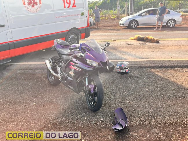 De acordo com as informações, o casal seguia em uma motocicleta Yamaha R3, no sentido Sub-Sede a Santa Helena, quando acabou atingindo um cachorro de grande porte, que invadiu a pista.