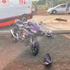 A mulher precisou ser encaminhada ao Hospital Beneficente Moacir Micheletto para avaliação médica. A motocicleta teve danos de grande monta.