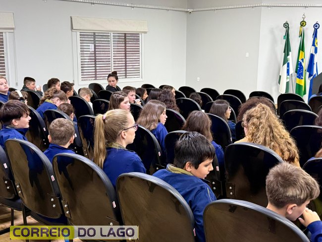 A presença de estudantes da rede municipal reforçou o caráter educativo e comunitário da sessão, promovendo a aproximação entre o Poder Legislativo e a população jovem do município.