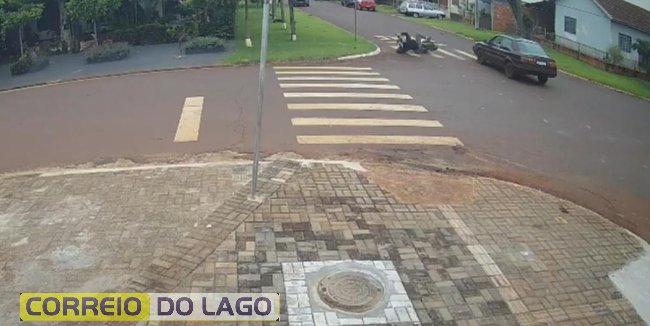 Imagens de uma câmera de segurança registraram o momento exato do acidente ocorrido no cruzamento da Rua Maripá com a Rua Boa Vista, em Nova Santa Rosa, no início da semana. O vídeo mostra o automóvel Santana colidindo contra uma motocicleta e, em seguida, o motorista descendo do carro, observando a vítima caída e fugindo sem prestar socorro.