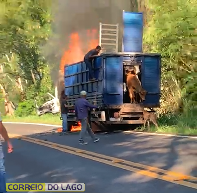 Vídeos registrados por motoristas que passavam pelo local mostram que as chamas começaram na região da cabine e se espalharam rapidamente. O veículo transportava bovinos, que foram retirados a tempo e não sofreram ferimentos.