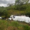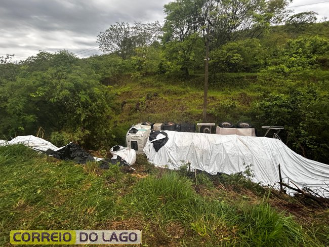 Felizmente, o condutor não sofreu ferimentos. Até o final da tarde, o caminhão permanecia no local, aguardando a remoção.