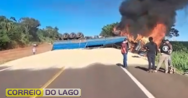 Caminhão pega fogo após acidente na BR-277 e rodovia é interditada em Céu Azul