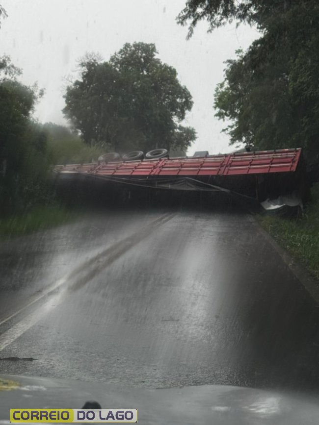 Um acidente envolvendo um caminhão provocou a interdição total da PR-590, no município de Ramilândia, na tarde desta terça-feira (3).