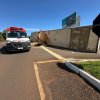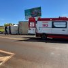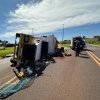 Caminhão tomba na PR-497 em Itaipulândia e motorista é encaminhado ao hospital