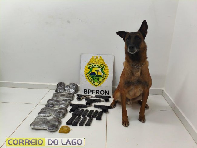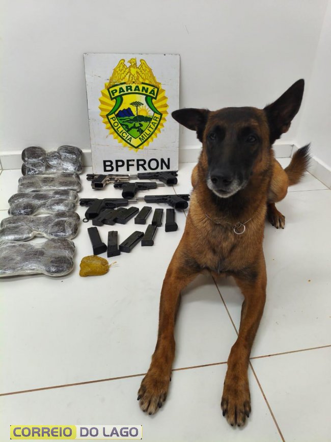 Nesta quinta-feira (9), a Polícia Militar do Paraná (PMPR), por meio do Pelotão de Operações com Cães do Batalhão de Polícia de Fronteira (BPFRON), abordou um ônibus interestadual que fazia a rota Campo Grande (MS) – Guaíra (PR). A ação ocorreu em um posto da Polícia Rodoviária Federal (PRF), no município de Guaíra. Durante a fiscalização, o cão de faro Ollie indicou a presença de ilícitos com duas passageiras que viajavam juntas.