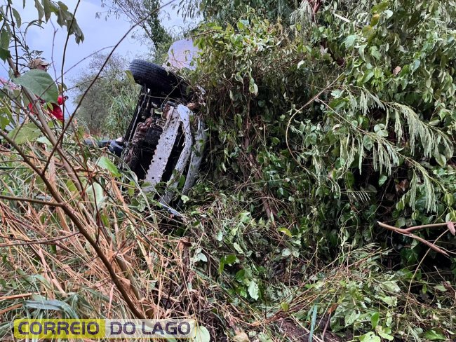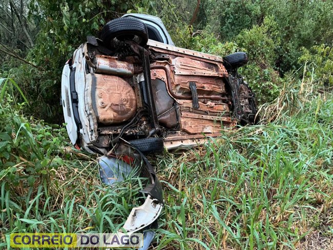 Capotamento impressionante durante chuva forte deixa motorista ferido na PR-488 em Santa Helena