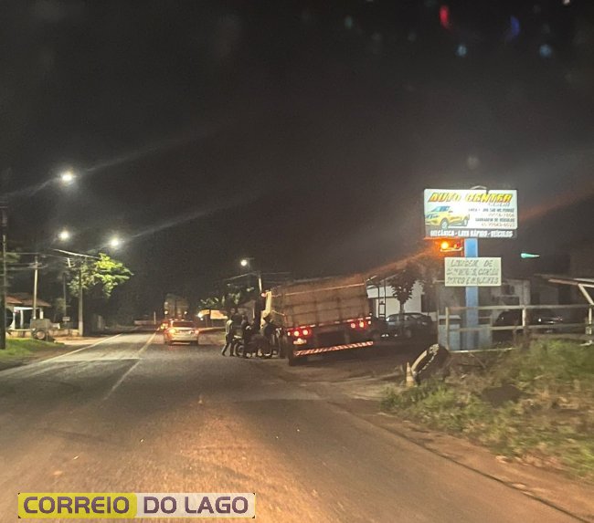 Uma carreta com problemas mecânicos interditou temporariamente a rodovia PR-495, na noite desta terça-feira (10), entre o distrito de São Clemente, em Santa Helena, e o município de Entre Rios do Oeste.