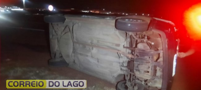 Um Fiat Uno capotou na noite de sábado (02) após ser atingido por outro veículo na PR-239, em Assis Chateaubriand. O motorista responsável por provocar o acidente, que conduzia um Volkswagen Golf preto, fugiu do local e ainda não foi localizado pelas autoridades.